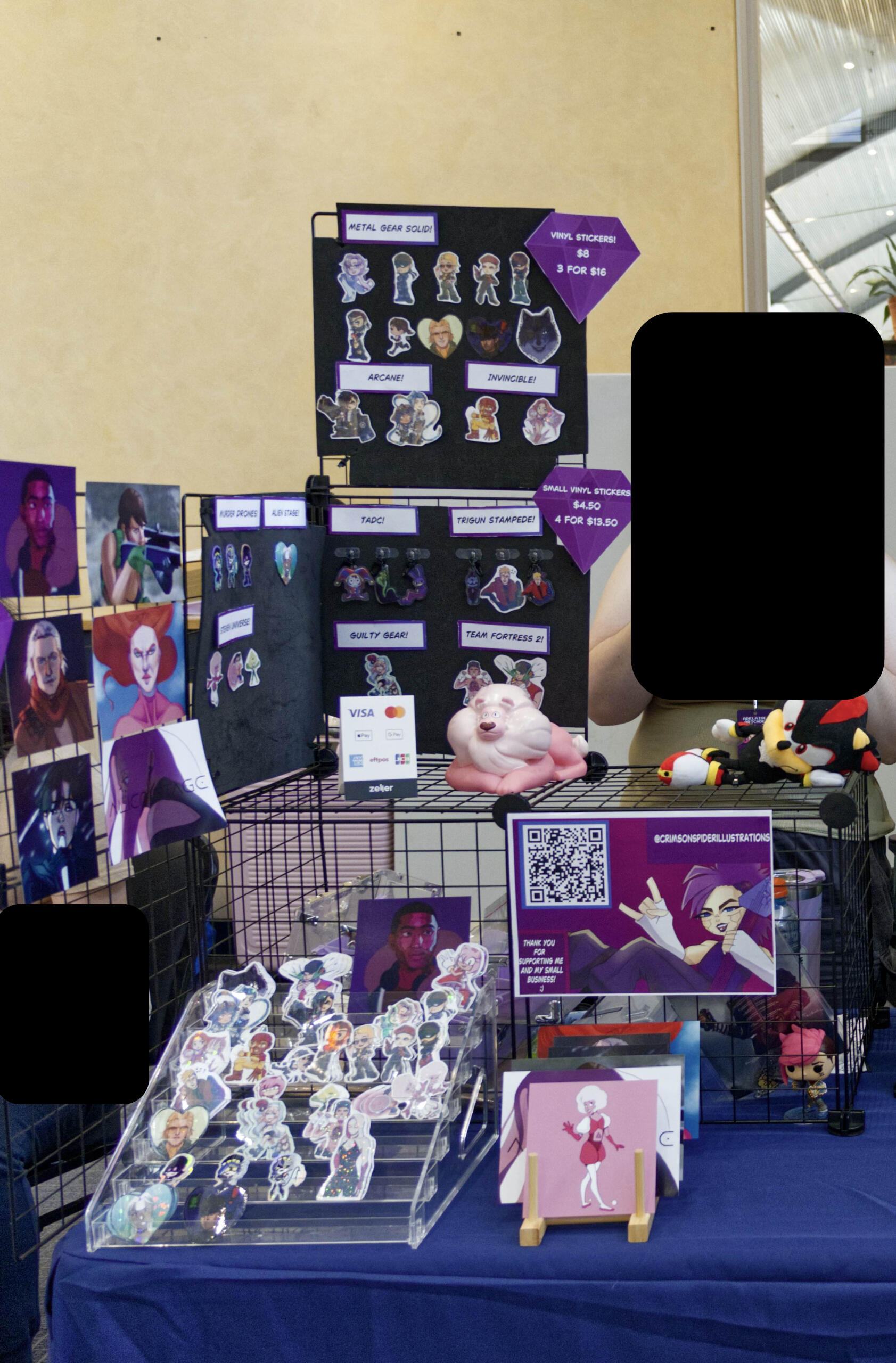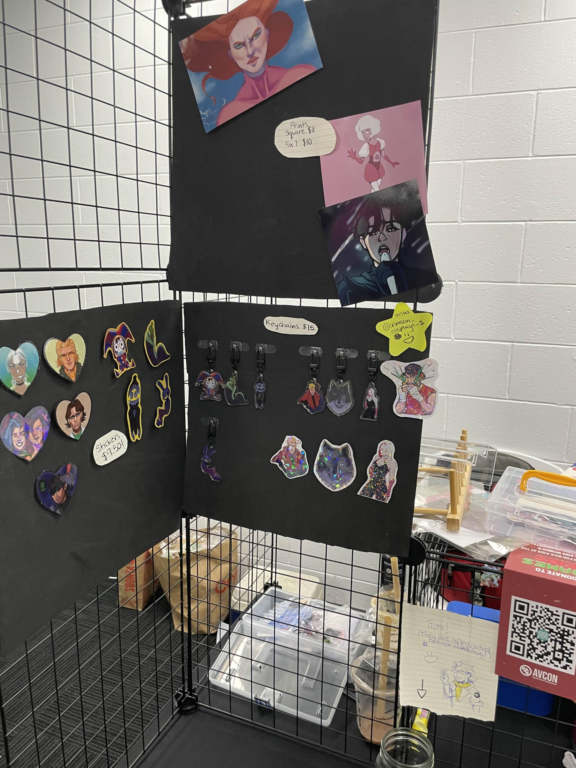 This is where you can see examples of my merch, art (and animation), and previous artist alley tables!